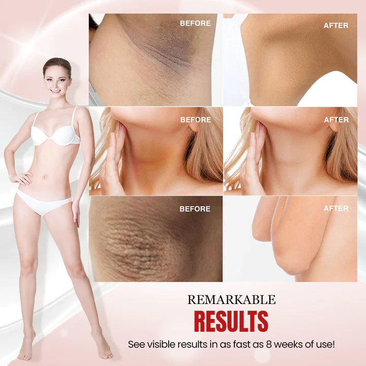 Adatta a diversi tipi di pelle: Una crema creata appositamente per aiutare ad affrontare l’aspetto delle aree scolorite, migliorando l’aspetto generale della pelle sensibile come ascelle, aree intime, mani, petto, ginocchia, gomiti e viso. Corregge i depositi di melanina causati da abbronzatura, ormoni o depilazione.