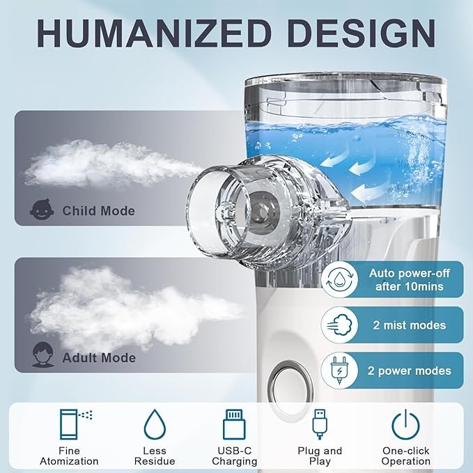 Raccomando questo nebulizzatore portatile a tutti i miei pazienti che necessitano di trattamenti respiratori regolari o occasionali. La tecnologia ad ultrasuoni consente una nebulizzazione fine ed efficace, garantendo che i farmaci o le soluzioni terapeutiche raggiungano correttamente le vie respiratorie superiori e inferiori.