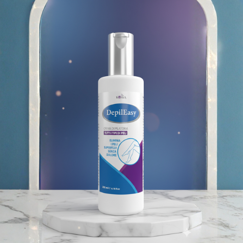 Depil Easy è la crema depilatoria rapida che scioglie i peli in pochi minuti e lascia la pelle liscia, morbida e nutrita grazie a Urea, Burro di Karitè, Aloe Vera, Pantenolo e Vitamina E. Formula efficace ma delicata, ideale anche per pelli sensibili.